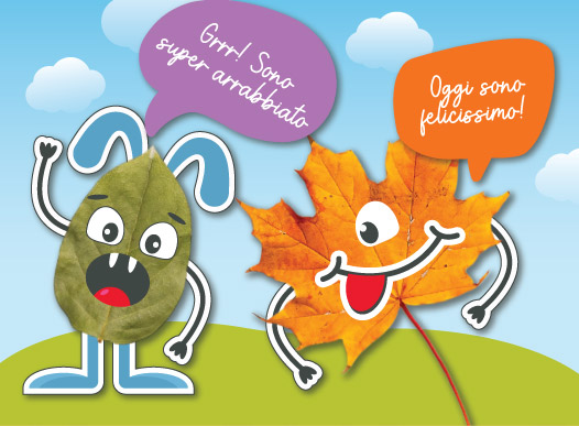 Un lavoretto divertente con le foglie per mostrare come si sente il tuo mostriciattolo oggi.
